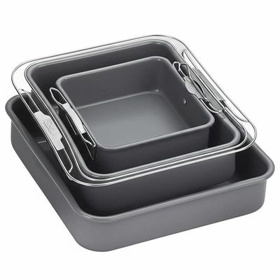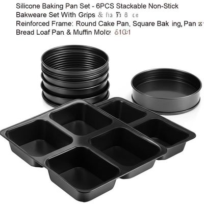 Il nostro set di teglie da forno in silicone di grado professionale include teglia rotonda, teglia quadrata, teglia per pane e stampi per muffin - tutti con impugnature e telai rinforzati in metallo per durata e facile maneggevolezza.