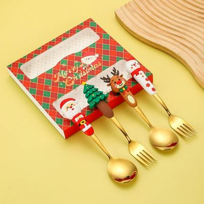 Set di cucchiaio e forchetta di Natale in silicone personalizzato ️ Silicone di qualità alimentare + acciaio inossidabile 304 ∙ Tagli di cucina di cartoni animati per bambini e regali