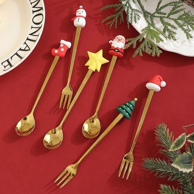 Set di cucchiaio e forchetta di Natale in silicone a manica lunga personalizzato Silicone di qualità alimentare + acciaio inossidabile 304 Tagli di cucina per bambini e adulti
